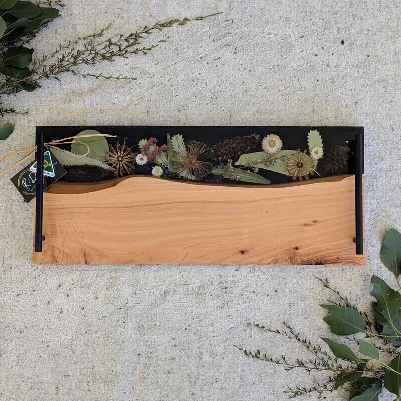 Discover the beauty of Australia’s landscapes in a functional piece of art with our unique cheese board. Made from locally sourced timber, resin, and dried Australian flora, each board is a testament to artisanal craftsmanship and the natural splendor of our continent.